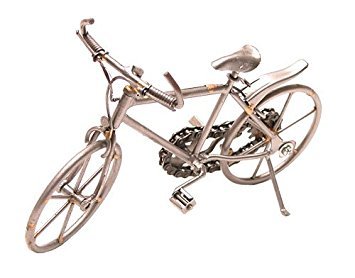 -. Feature : Handcrafted heavy metal bicycle sculpture / Made out of heavy metal, nuts, and bolts / Both wheels rotate, gears move, and front of bike can move from side to side / Unique for gifts / Length: 8.5in/ 21cm, Width: 2in/ 5.5cm, Height: 5in/ 13.5cm