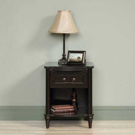 Studio : ProGiga Select Publisher : ProGiga Select Product Description This lovely piece offers a versatile look and neutral color that work well with most types of interior themes. Beyond the bedroom, this traditional nightstand can also work well in the living room, the den, the hallway and other areas of the home or office. The classic design features post legs and solid wood feet to achieve a stately and timeless look. It's made with a single drawer that sits on metal runners with safety stops for smooth operation. It also has an open shelf for extra storage. This bedroom nightstand features the brand's patented T-slot assembly system for quick and easy set-up. 0