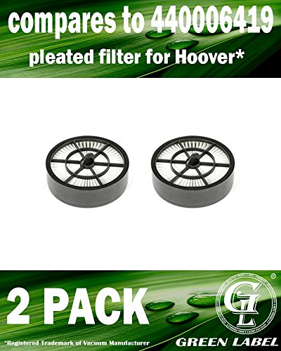 2 Pack For Hoover Sprint QuickVac Pleated Vacuum Filter (compares to 440001619). Genuine Green Label product.