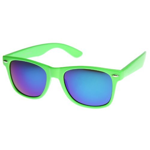 Bright and flashy color version of the timeless classic horn rimmed that features vibrant reflective color lenses. Made with an acetate based frame, metal hinges and color mirror polycarbonate UV protected lenses. Lens Height:43mm Lens Width:52mm Bridge:18mm Frame Total:145mm