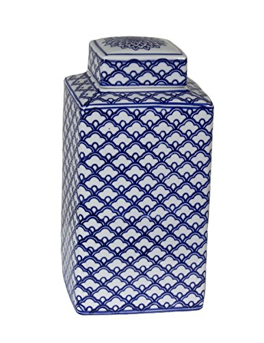 Decorative Covered Jar, 6" x 6" x 11", Blue/White