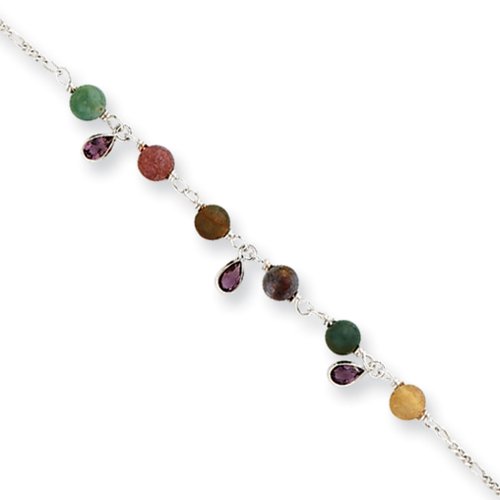What's not to love about this stunning beaded ankle bracelet featuring multi-colored 5mm jasper beads with dangling teardrops? It is fashioned from sterling silver, measures 9-inches in length and fastens with the spring ring clasp. The color range varies on all genuine stones so please allow for slight variations in shades. Gemstone treatment: unknown.Feature