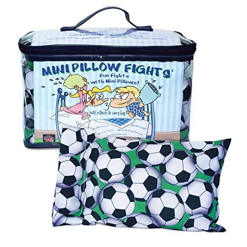 Studio : Snowtime Anytime Publisher : Snowtime Anytime Product Description Mini Pillow Fights - Soccer - Set of 3 Mini Pillows in Carry Bag --Get ready to rumble with this pillow fight game! Set comes with 3 mini pillows that are 14" x 8" in size. Great for sleepovers, slumber parties, birthday parties, camp-outs, vacations, schools, day cares and even grandma's! Take them anywhere and have a swingin' good time! SNOWTIME ANYTIME is a brand new patent-pending indoor snowball fight invented by two Moms. A product designed to keep kids busy all year long, it gets your kids exercising without knowing it and away from technology for a while. SNOWTIME ANYTIME is good, safe, old-fashioned fun indoors. Pillows are machine washable on gentle cycle. Polyester pillowcases and polyester fiberfill - hypo allergenic. For ages 3 to 103! 0