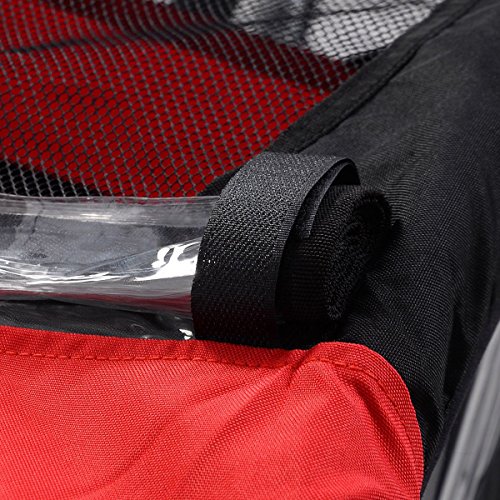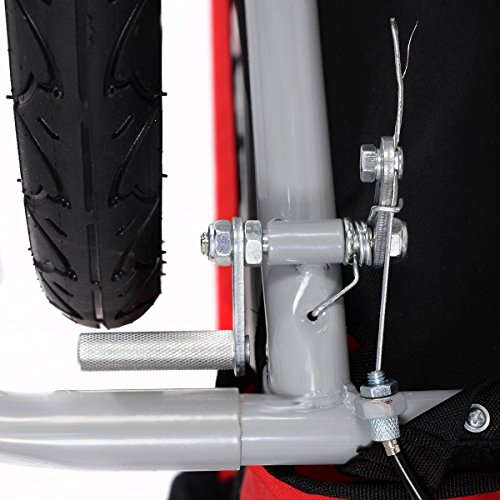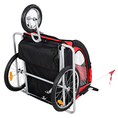 Studio : USA Publisher : USA Binding : Baby Product Product Description Brand new and high quality/ Hold up to 2 children older than 18 months/ 2 in 1 weather canopy, shock-absorbing frame, hand brake/ Universal wheels with 360 degrees swivel function/ 5-point safety belt for safety and convenience to travel with children/ Foldable hitch coupler to realize both trailer and stroller/ Breathable mesh with rainproof cover/ Simple disassembly and assembly to save room for easy storage/ Safety flag for child trailer visibility in traffic Specifications: Color: Red Black Material: Steel Tube Frame with 600D Oxford Cloth and PVC Transparent Top Film Weight Capacity: 57 lbs (2 Kids under Age 7) Overall Size: 51.2' x 35.4' x 40.2'(L x W x H) Package Size: 34'L x 27'W x 9'H (nearly equal to folded size) Front Wheel Size: 1 x 12'(diameter) Rear Wheel Size: 2 x 20'(diameter) Max Speed of the trailer: 16km/h Unit Weight: 39.7 lbs Package Includes: 1 x Child Trailer, 1 x front wheel, 2 x Rear Wheels, 1 x Jogger Handle with brake, 2 x Wheel Side Frame, 1 x Safety Flag, 1 x Trailer Top Cover, 1 x Trailer/Stroller Conversion Kit, 1 x User Manual 0