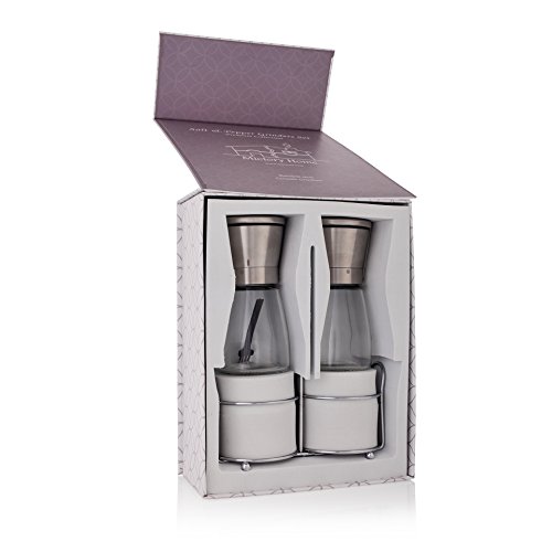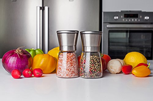 Add the perfect touch of salt and pepper to your meals and favorite recipes with Mictory Home 2-Piece Salt and Pepper Grinder Set. Are you looking for the best salt and pepper shakers for your kitchen or dining room table? Want grinders that produce the right level of fineness for every meal? If so, you need the Mictory Home Stainless-Steel Salt and Pepper Grinder Set , a stylish and functional pair of shakers that let you fine-tune exactly how much spice you want with every meal. Simply Twist and Enjoy Fitted with high quality ceramic burrs, our grinder shaker sets can be used for all your favorite herbs and spices, including Himalayan pink salt, peppercorn, cloves, salt, pepper and so much more. Just select between fine, medium and heavy coarseness, twist it out onto your favorite foods, and add just the right touch of flavor to your cooking. Product Details: - Manual High Quality Salt and Pepper Grinders (2-Piece Set)
