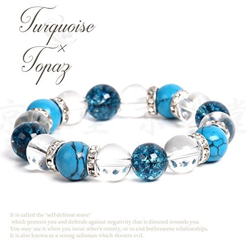팔 주위:약16cm 종류:수정(반죽) 12mm,진한《다코이즈》(반죽) 12mm,블루topaz(반죽) 12mm