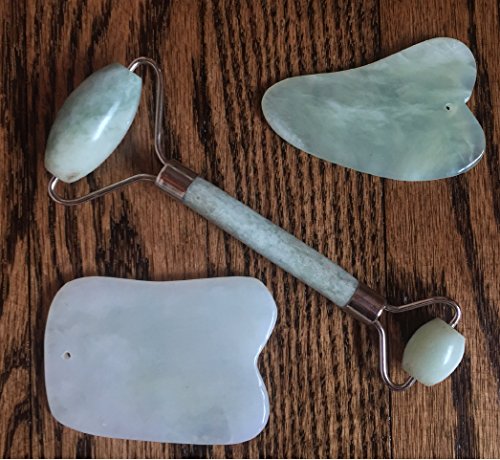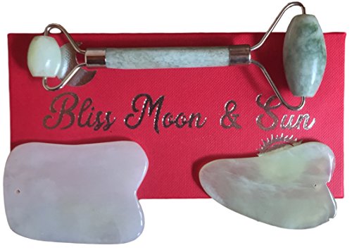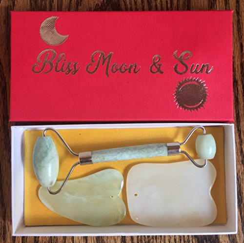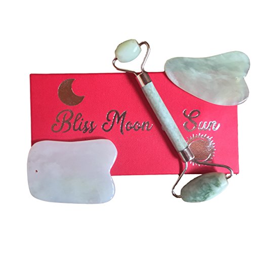 - ✅ EXPERIENCE AGELESS BEAUTY - Bliss Moon & Sun Premium Jade Face Roller included with Two Gua Sha Scraping Stones is the perfect set of tools for a daily, revitalizing facial, neck and entire body massage, with proven benefits. Learn the traditional chinese massage and healing technique, “Gua Sha”, here; https://trainedto.com/gua-sha-ultimate-guide/