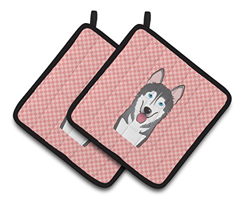 Caroline's Treasures Checkerboard Pink Alaskan Malamute Pair of Pot Holders BB1218PTHD, 7.5HX7.5W, Multicolor