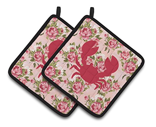 Caroline's Treasures Crab Shabby Chic Pink Roses Pair of Pot Holders BB1104-RS-PK-PTHD, 7.5HX7.5W, Multicolor