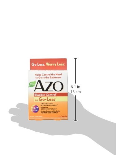 ReleaseDate : 2015-10-13 Studio : AZO Publisher : AZO Binding : Health and Beauty Product Description Reduce the urge to go to the bathroom with naturally-sourced ingredients like pumpkin seed extract. Frustrated with how often you feel the urge to go to the bathroom? Tired of waking up in the middle of the night? There's a better way. AZO Bladder Control with Go-Less is a safe, drug-free supplement that helps reduce the urge and supports bladder strength. This naturally-sourced blend will help you go less and worry less both day and night. AZO Bladder Control is derived from a naturally-sourced blend of pumpkin seed extract and soy germ. Pumpkin seed extract helps support bladder control by toning the muscles and maintaining the strength of the detrusor and sphincter muscles to promote normal function. Soy germ supports healthy control by sustaining the bladder muscle and pelvic floor. You may experience bladder health benefits in as little as two weeks, however your body may respond faster or slower, so give it up to 6 weeks to realize the full benefits. 0