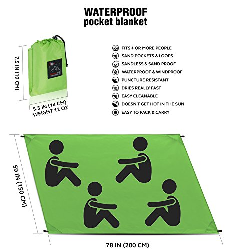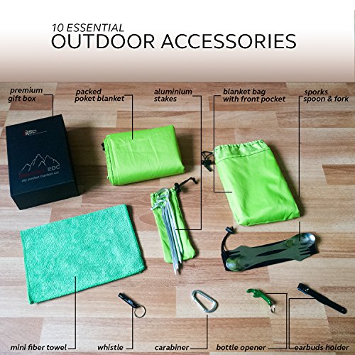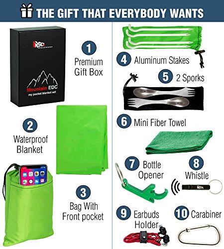 Studio : smartRSQ Factory Publisher : smartRSQ Factory Product Description WHICH IS YOUR FAVORITE OUTDOOR ESCAPE? No matter what your choice is, your Waterproof Picnic Set by SmartRSQ is always there, in your Backpack, Purse, or Car. The size (79'x 59') of our Outdoor Blanket makes the difference! You'll quickly realize that no other brands come close! Our lightweight blanket is waterproof, windproof, sand proof, easily cleanable, machine washable, it dries fast and it's also puncture resistant. The Waterproof Camp Blanket is also compact portable and it really fits 2-4 persons. The Bag - keeps your trekking hiking blanket safe. It has a Front Pocket to safely store and carry your phone, keys, sunscreen, or money. Additional Camping Equipment: 4 ALUMINIUM STAKES - One for every loop attached to the Beach Picnic Blanket. They are strong enough to hold all of our picnic blankets firmly in place even on windy days ; A CARABINER - Clip your Compact Blanket to your rucksack or backpack. It gives you extra space A WHISTLE - You can use it for fun, or in case of an emergency! A MINI FIBER TOWEL - Wipe your face, hands or body. It is super absorbent and it dries fast. 2 SPORKS - You'll have 2 spoons and 2 forks in just 2 reliable stainless steel utensils for 2 persons. EARBUDS HOLDER - It keeps your headphones, or other cables in place without having to untangle them every time. ; BOTTLE OPENER - You never find one when you need it, right? When you click "ADD TO CART" you will get the best camping essentials hiking kit on the market and 1 YEAR 100% MONEY BACK WARRANTY or FREE REPLACEMENT Get ready to Relax. Anywhere! Anytime! 0 |