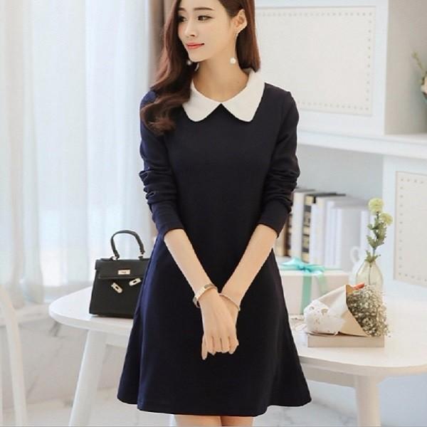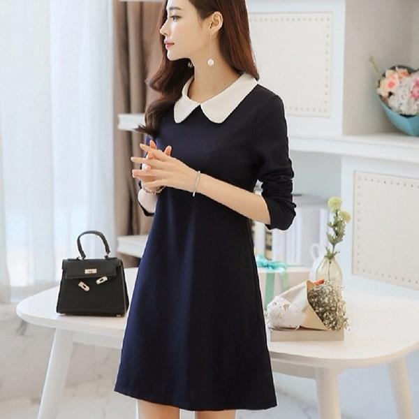 ・商品説明モノトーンのワンピースに襟のホワイトラインがモダンな可愛らしさを演出してくれます。上半身は襟の効果ですきっりと、襟はひらっと立体的なフレアが広がり、かわいすぎないフェミニンな雰囲気に仕上げてます。ウエストで切り替えしがあるのでメリハリのあるデザインです。女子会やデート用のワンピースとしても大変重宝します。【サイズ】フリーサイズ胸囲・約90cm袖丈・約58cm着丈・約84cm肩幅・約37cm【カラー】ネイビー