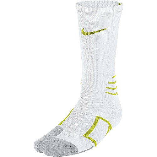 Sold as a one-pair pack. This brand is a member of the Sustainable Apparel Coalition. Crew-cut sock sits at the calf. Dri-FIT fabric wicks moisture away from the skin. Compression fit adds support and stability. Cuff offers a secure fit. Banded arch. 80 polyester, 8 nylon, 8 cotton, 4 Spandex. Machine wash cold. Tumble dry low. Made in the U.S.A.