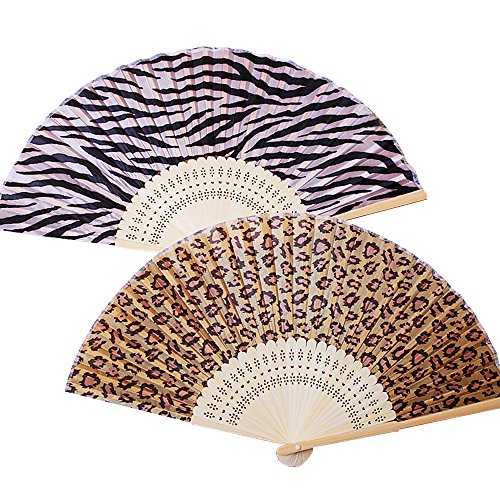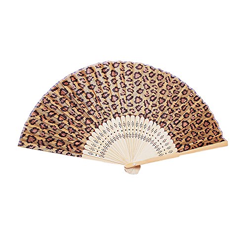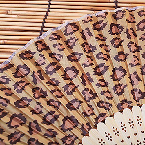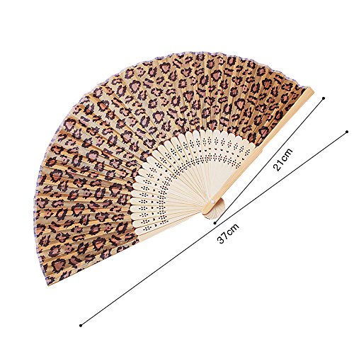 Baidercor Leopard Print Fabric Bamboo Folding Handheld Hand Fan