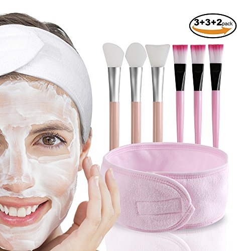 Face Mask Brush, Teenitor 3 Soft Silicone Facial Mask Brush& 3 Bristles Brush Facial Mud Mask Applicator Brush & 2 Pack Makeup Wrap Headbands, 8pcs