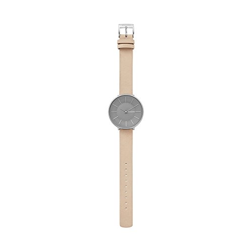 This 38mm Karolina features a sandblasted dial with linear indexes and two-hand movement. The nubuck leather strap will naturally age with wear. A quick-release pin construction makes it easy to interchange the strap with any 14mm standard watch strap.