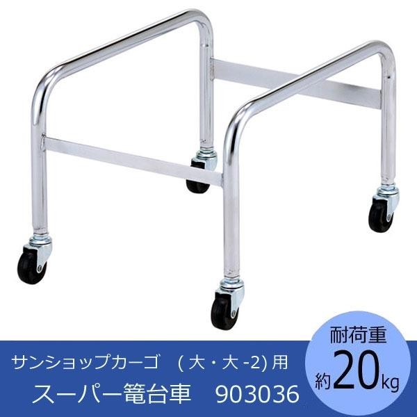 スーパーの籠を重ねて運べる専用台車です。 製造国:日本 商品サイズ:(外寸)464×357×360mm、キャスター径:φ50mm ※サプライヤー直送品 ご注文後2~3営業日後の出荷となります【商品名】三甲 サンコー サンショップカーゴ (大・大-2)用 スーパー篭台車 903036