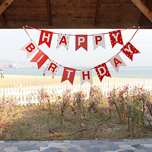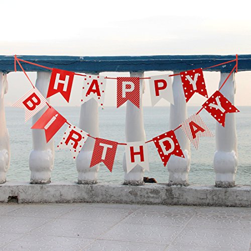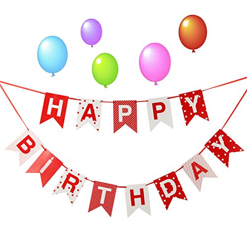 -. Title : LOVELY BITON(TM) Happy Birthday Banner,Party Decorations, Birthday Decorations Supplies, Bunting Birthday Flag Banner for all people age,Send 5 Balloons Free(red)