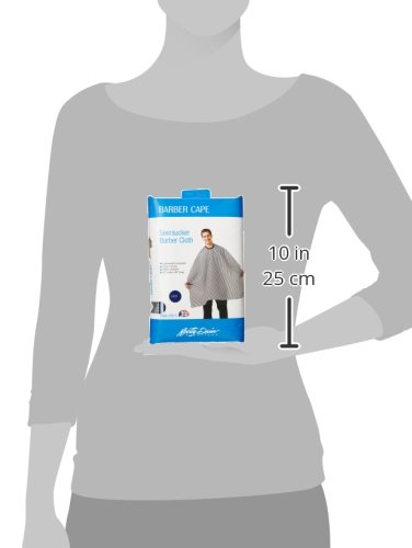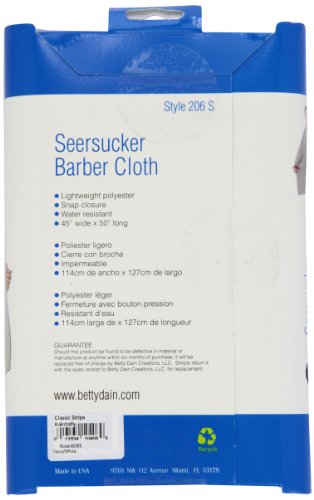 The classic stripe barber cutting cape by betty dain is made of a seer-sucker nylon material that hair slides right off of. This cutting cape is 45 inches x 50 inches and is perfect for barbers and/or stylists. Snap closure. Machine washable. Made in the USA.