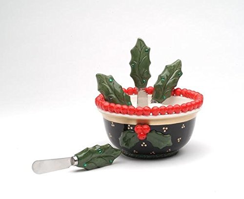 Appletree Design 40219 Holly and Berries Bowl with 4 Spreaders, 5-5/8 by 3 by 5-5/8-Inch