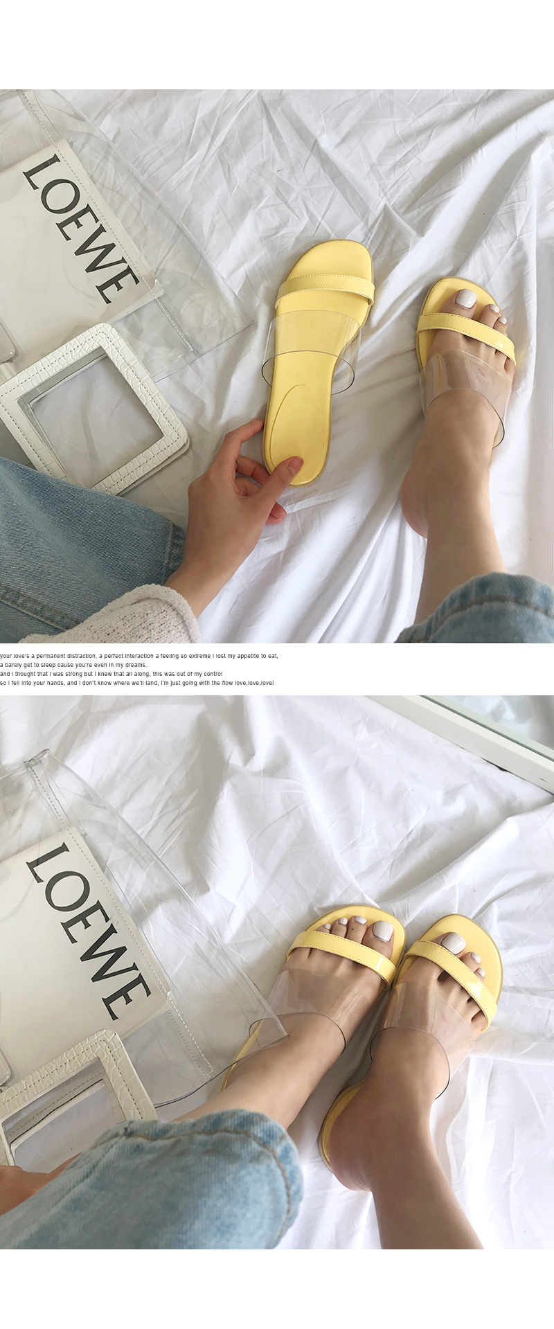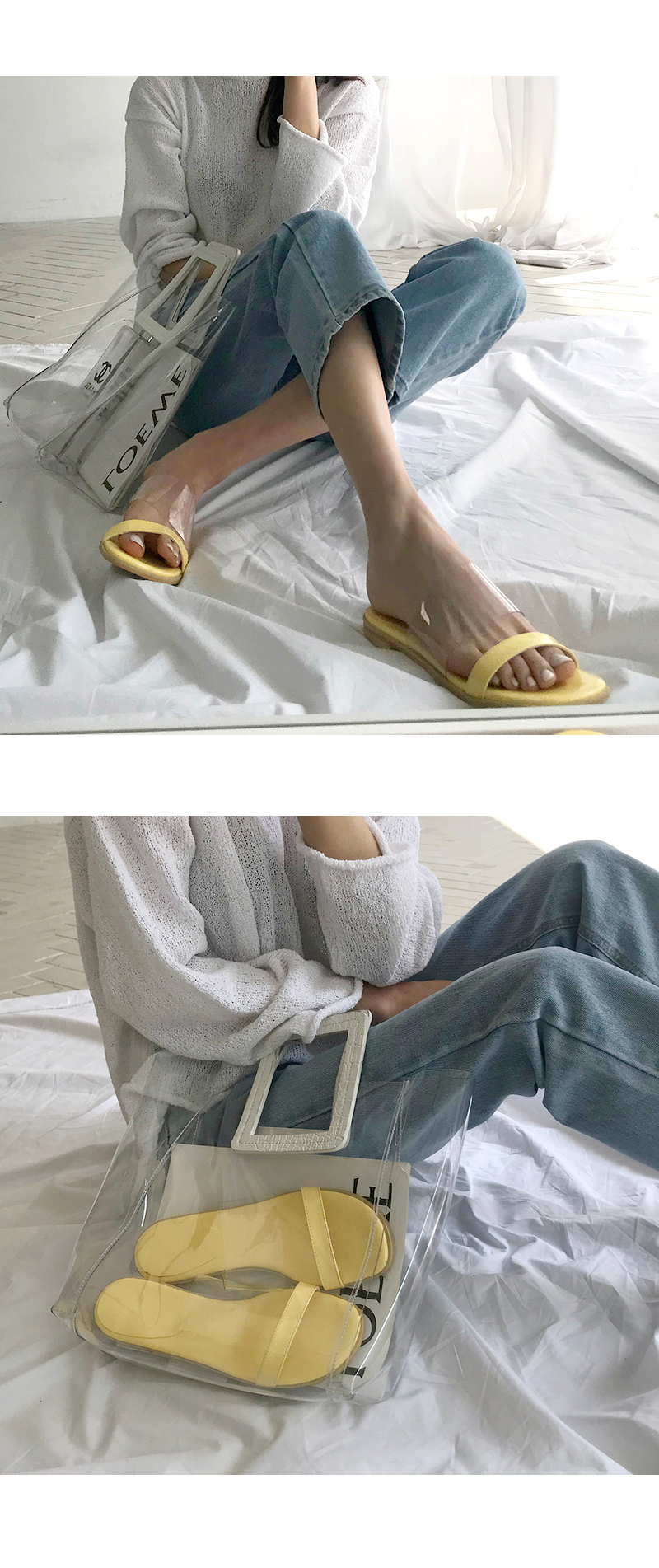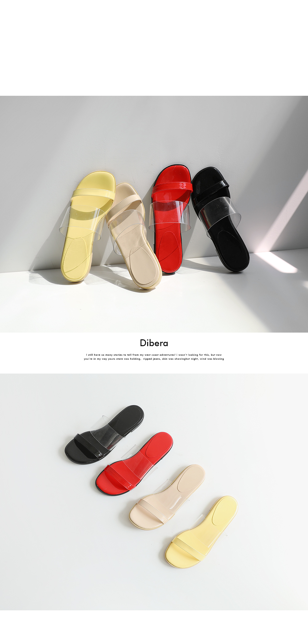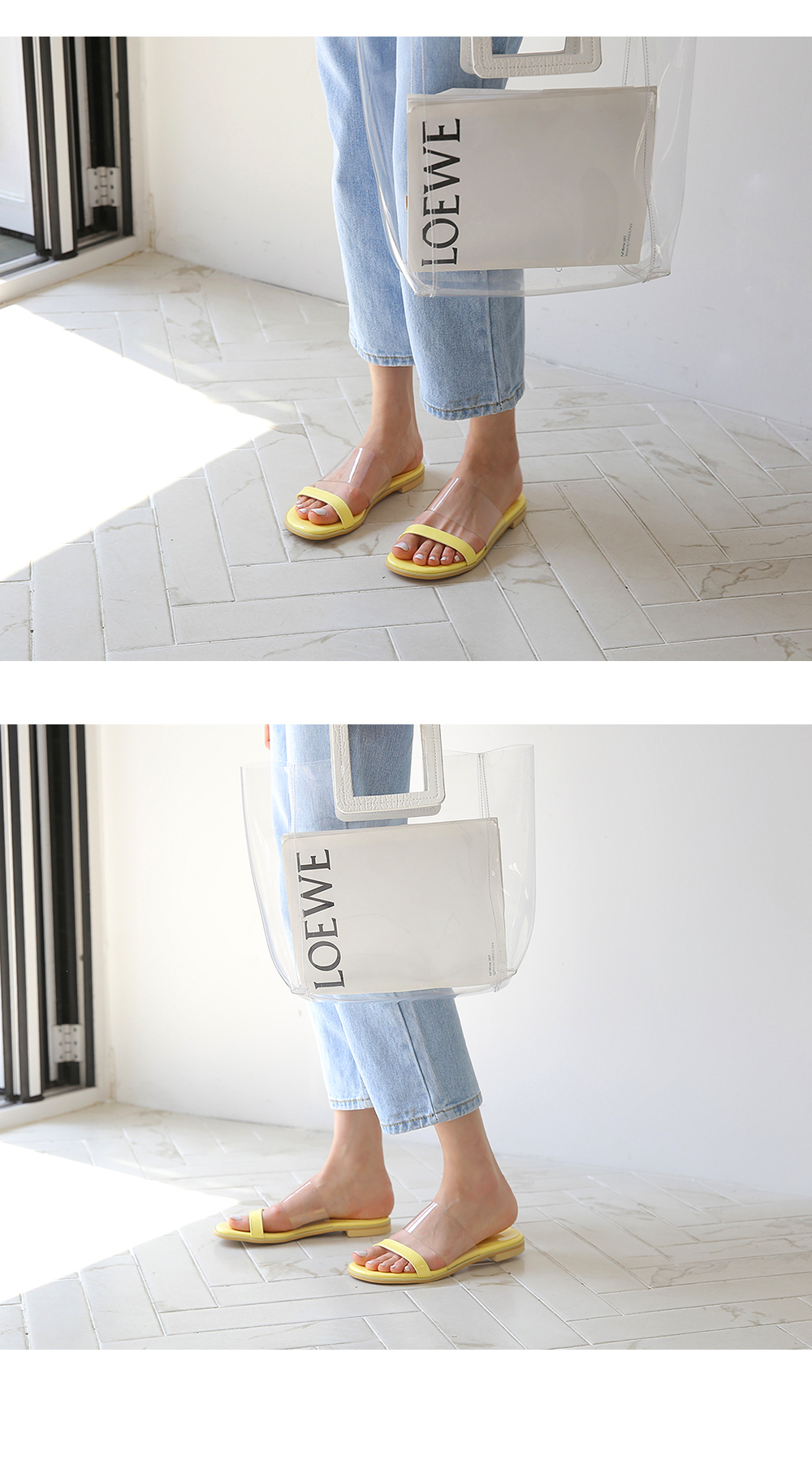 DETAILS - 소재 : 에나멜 PVC - 컬러 : beige,yellow,red,black - 피팅감 : 정사이즈 / 무게 : 보통인편 - 착화감 : 편해서 데일리 슈즈로 좋아요 - 모델피팅 : 235