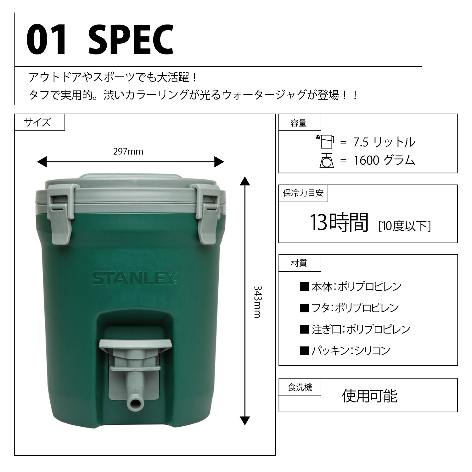 STANLEY (Stanley) water jug ??7.5L Green 01938-004 (Japan genuine)
