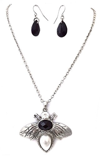 Bumble Bee Silver Tone Simulated Pearl Rhinestone Trendy Necklace Earrings Set
