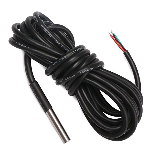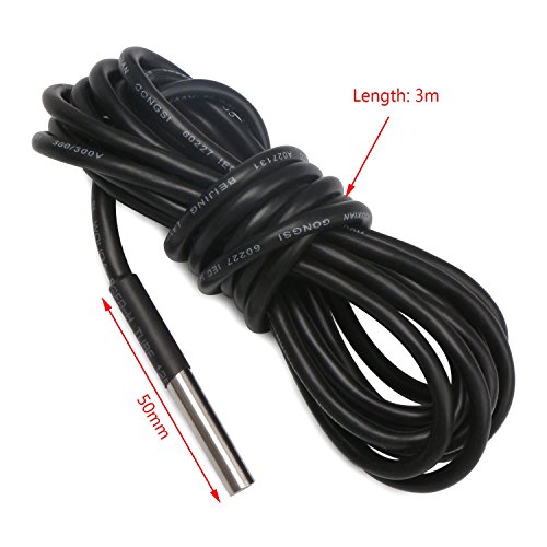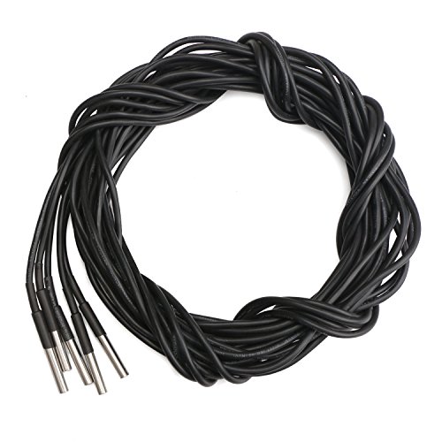 DROK 5 Pack of DS18B20 Temperature Sensor Digital Temp Probe Waterproof Thermal Cable Stainless Steel Probe 3 Meter Thermometer Gauge Thermistor Detector Sensor Indoor Outdoor Lab Car Usage