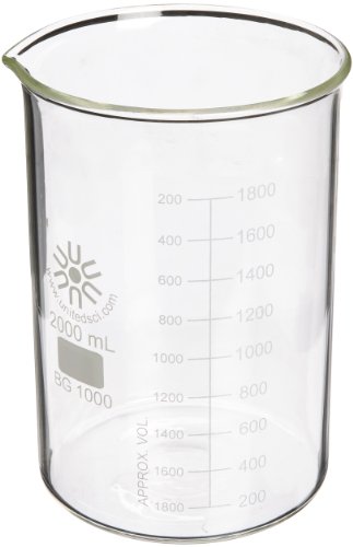 United Scientific BG1000-2000 Borosilicate Glass Low Form Beaker, 2000ml Capacity