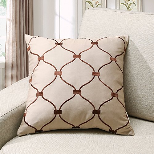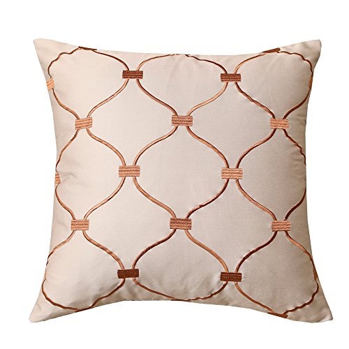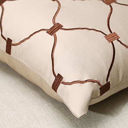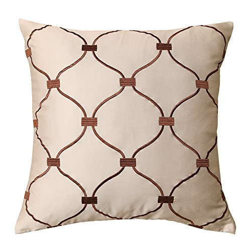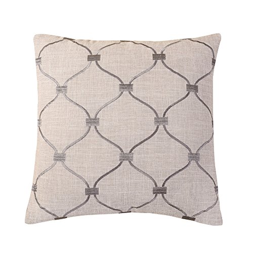 Exquisite trellis embroidery. Soft and elegant colors make it an appealing addition to any room. BLEND of cotton and polyester shell, crafted of durable, easy-care material. Embroidery with woven of acrylic/rayon. Artful pattern is highly detailed. Fill included: 100percent polyester. Premium quality fill. Weight count higher than average. Cover is removable, on-seam zipper. Knife-edge tailoring. Reverses to solid neutral.Feature