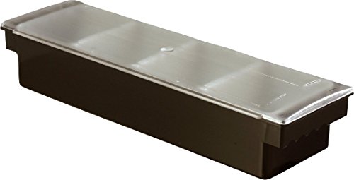 The Carlisle CH1503 polycarbonate condiment caddy has four removable containers and a single lid and is suitable behind a bar for holding cherries, olives, lime or lemon wedges, or other condiments or garnishes for beverages. The condiment caddy is made of black polycarbonate for strength, rigidity, and resistance to stains. The containers are made of clear polyethylene for durability, have smooth contours for cleaning, and each has a capacity of 1-1/2 pints. The lid helps protect the food in the caddy from spills and airborne contaminants. The lid is made of ABS (acrylonitrile butadiene styrene) plastic for strength and resistance to impact and abrasions and is clear for identifying contents at a glance. This condiment caddy can be mounted to a bar sink or rail and measures 19.75 x 6.25 x 3.75 inches (L x W x H). (L is length, the horizontal distance from left to right; W is width, the horizontal distance from front to back; H is height, the vertical distance from lowest to highest point.)