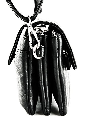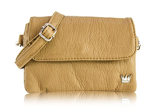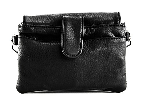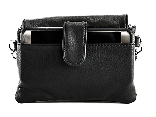 -. Feature : Stonewashed, vegan leather / Fully adjustable, detachable crossbody strap / Front flap with clasp, three (3) central zip pockets, rear cellphone pocket, and logo hardware / Top zip closure / Dimensions: 6" x 3.5" x 2"