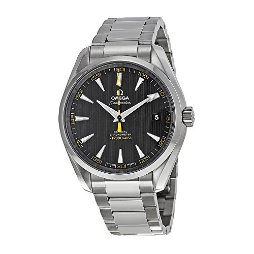 -. Binding : Watch -. Brand : Omega -. Color : Black -. Department : mens -. EAN : 7612586243639 -. Feature : Stainless steel case with a stainless steel bracelet; Fixed stainless steel bezel; Black dial with luminous silver-toned hands and index hour markers; Minute markers around the outer rim; Dial Type: Analog; Luminescent hands and markers; Date display at the 3 o'clock position; Automatic movement with a 60 hour power reserve / Scratch resistant sapphire crystal; Screw down crown; Skeleton case back; Case diameter: 41.5 mm; Round case shape; Deployment clasp; Water resistant at 150 meters / 500 feet; Functions: date, hour, minute, second; Luxury watch style; Watch label: Swiss Made; Omega Sea master Aqua Terra Black and Yellow Dial Men's Watch 23110422101002 / Swiss-automatic Movement / Case Diameter: 41.5mm / Water Resistant To 500 Feet -. Label : Omega -. Manufacturer : Omega -. Model : 23110422101002 -. MPN : 23110422101002 -. PackageQuantity : 1 -. PartNumber : 23110422101002 -. ProductGroup : Watch -. ProductTypeName : WATCH -. Publisher : Omega -. Studio : Omega -. Title : Omega Men's 23110422101002 Seamaster150 Analog Display Swiss Automatic Silver Watch