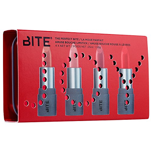Includes Lipsticks in Honeycomb (beige nude), Sugarcane (pale pink), Rhubarb (rich plum rose), Cayenne (bright red). Channel your inner elegance with these four bestselling mini Amuse Bouche Lipsticks that give lips either a subtle hint of color or a bright pop-all with a satin finish. Create flawless and polished lip looks with this giftable collection of trendy nude and bold shades.Feature