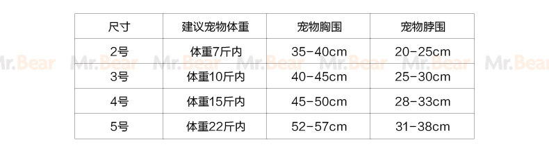 3#, suitable for weight less than 5kg, chest 40-45cm, neck circumference 25-30m, (within the proposed 5kg)