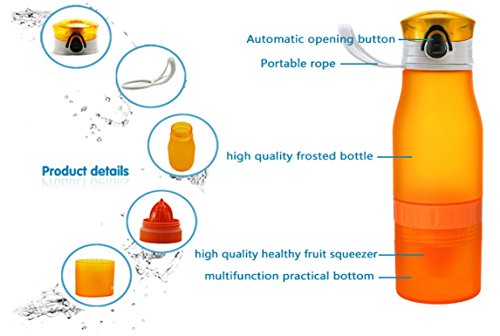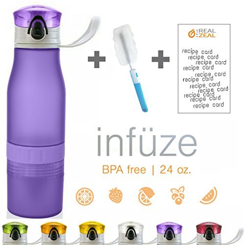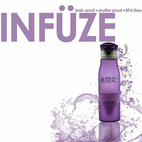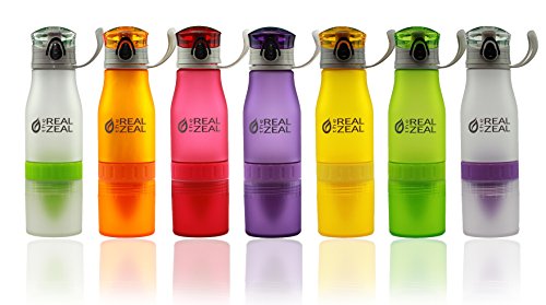 The Real Zeal Infüse Flip-Top BPA Free Water Bottle with Fruit Chamber and Integrated Juicer, 24 oz