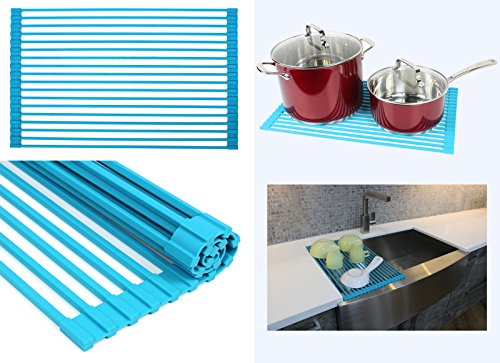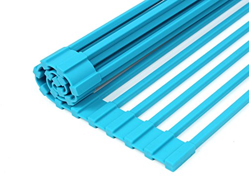 Vibrant Colors and Easy Storage: Comes in multiple color options to match with your kitchen décor, dish rack can be rolled up or folded easily and stored under the sink cabinet. Extra large sized offers ample space to utilize: 21.4” W x 12.8” L x 0.4” Thickness.