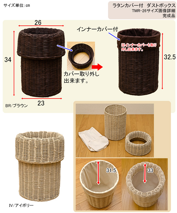 こちらは「ラタンダストボックス(ゴミ箱) 木製 幅26cm 脱着式カバー付き アジアンテイスト ブラウン」の商品ページです。商品画像や商品情報には、色違いやサイズ違いの商品が載っている場合がございます。ご注文前に色・サイズ・セット内容のご確認をお願いいたします。