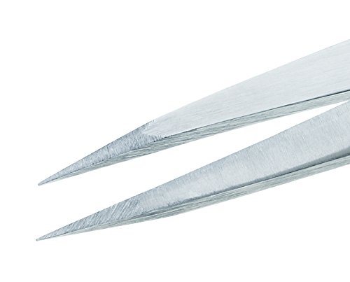 The point tweezer has extra-sharp, perfectly aligned hand filed points guaranteed to tweeze. Ideal for stubble and ingrown hairs. Stainless steel.