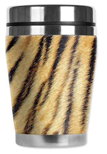 Mugzie Tiger Fur "Mini" Travel Mug with Insulated Wetsuit Cover, 12 oz, Black
