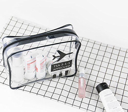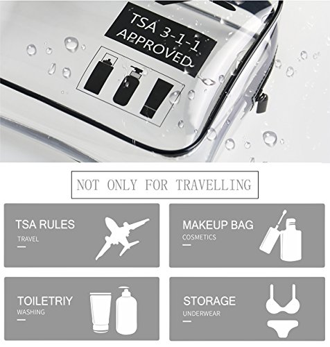 Clear Travel Toiletry Bag, TSA Approved TPU Quart Sized Carry-On Makeup Accessories Cosmetic Bag for Liquids