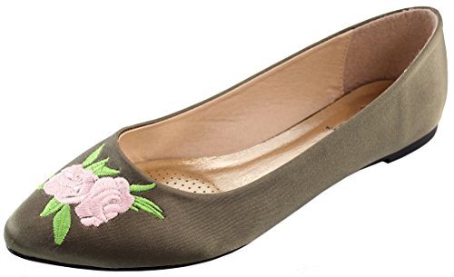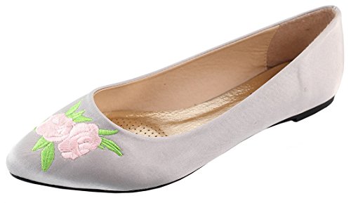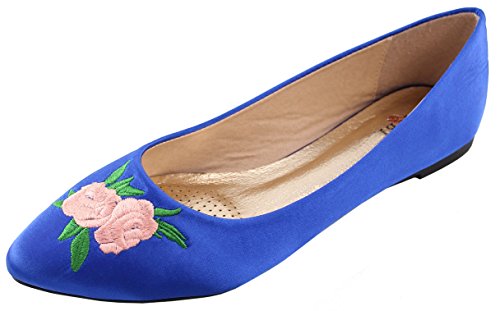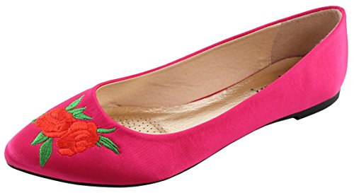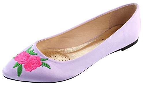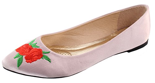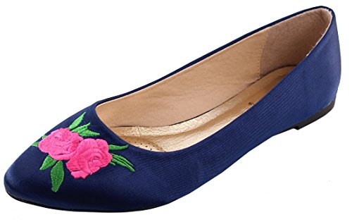 Elegant Footwear Women's Embroidered Rose Floral 90s Pointed Toe Ballet Flat