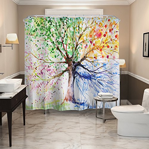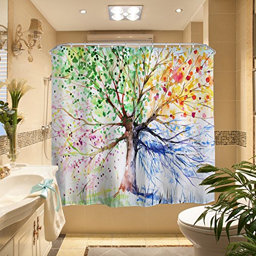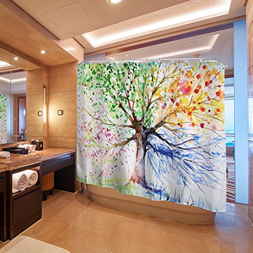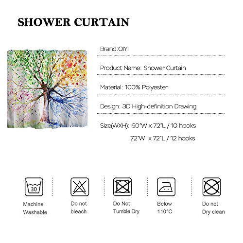 Qiyi Shower Curtain Waterproof/Repellent& Antibacterial, Rust Proof Grommets , Eco-Friendly , Machine Washable 72"W x 72"L - Multicolor