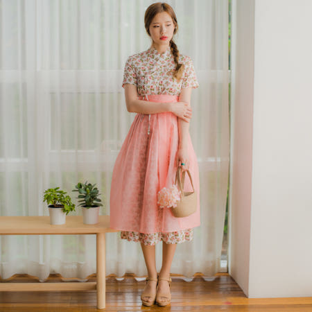 꽃닮 철릭원피스 허리치마 세트 살구반팔