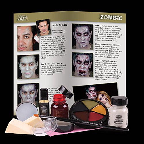 - DO NOT COMPROMISE FOR NOTHING LESS THAN THE BEST: Cheap makeup products might irritate your skin. Poor quality makeup kits include few things that cannot help you create a striking face zombie makeup! This kit is the perfect choice for you! It includes a ProColoRing bruise ring, coagulated blood gel, zombie flesh liquid latex, zombie flesh color cup, a Stageline makeup brush, teeth decay FX and a non-latex foam wedge! All the products are cruelty free!