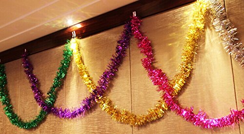 Carykon Elegant Hanging Sparkly Tinsel Garland, 5 Pcs, Each 3 Inch W x 6 Feet L, Holiday Decoration (Hot Pink)