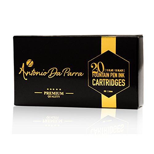 -. Title : Antonio Da Parra(TM) Fountain Pen Ink Refill Cartridges - Premium Quality - Pack of 20 ( 10 Blue and 10 Black ) International Standard Size Calligraphy Pens - Perfect Set