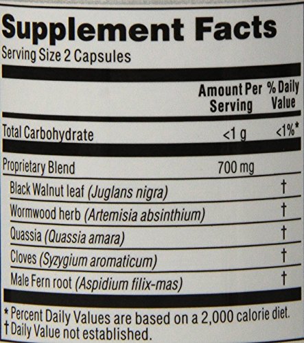 -. Feature : Ingredients: Black Walnut Leaves, Wormwood, Quassia, Cloves, Male Fern. Other Ingredients: Vegetarian source capsules. / Our absolute best seller since 1980 and praised around the world! KHP's secret formula is unequaled in the crowded wormwood market of today. / Additional Dietary Sestions: Pumpkin Seeds, Black Walnut Hull Extract. / Two capsules 3 times daily before meals