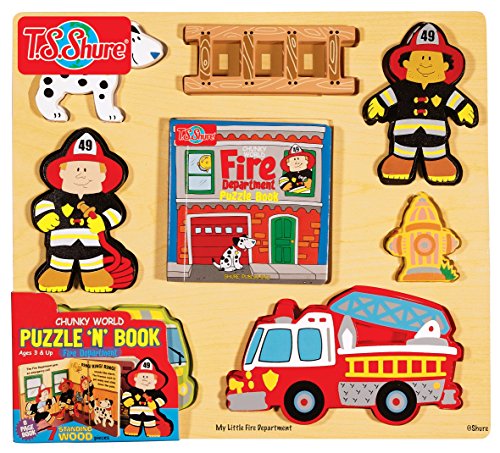 -. Binding : Toy -. Brand : T.S. Shure -. Department : unisex-child -. EAN : 0740984090627 -. Feature : Includes 7 oversized fireman themed puzzle pieces perfect for little hands and active minds. / Also Includes an 8-page illustrated Fire Department storybook. / Encourages hand-eye coordination, matching and hours of pretend play. / Each puzzle set is a well made, heirloom quality puzzle set. / Perfect for early learners aged 3 and up! -. IsAdultProduct : 0 -. Label : Shure Products -. Manufacturer : Shure Products -. Model : 9062 -. MPN : 9062 -. PackageQuantity : 1 -. PartNumber : 9062 -. ProductGroup : Toy -. ProductTypeName : TOYS_AND_GAMES -. Publisher : Shure Products -. Studio : Shure Products -. Title : T.S. Shure Chunky World Fire Department Chunky Puzzle & Book -. UPC : 740984090627