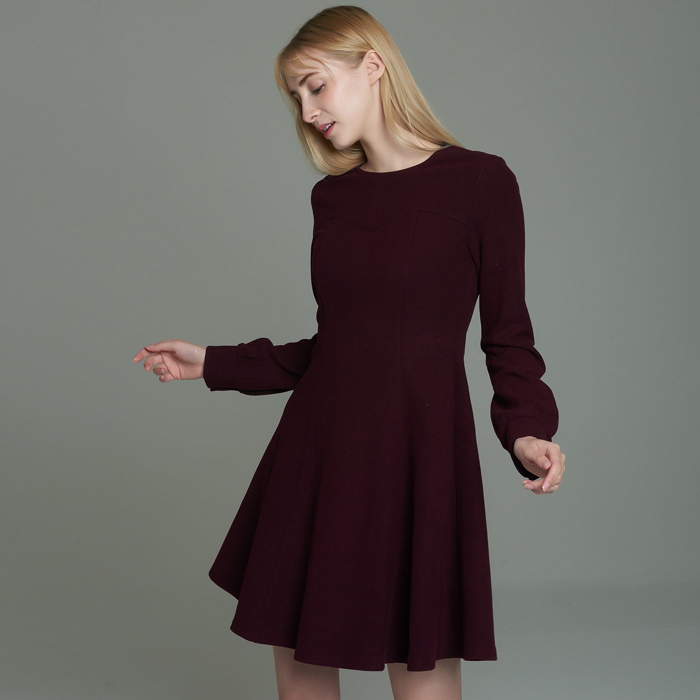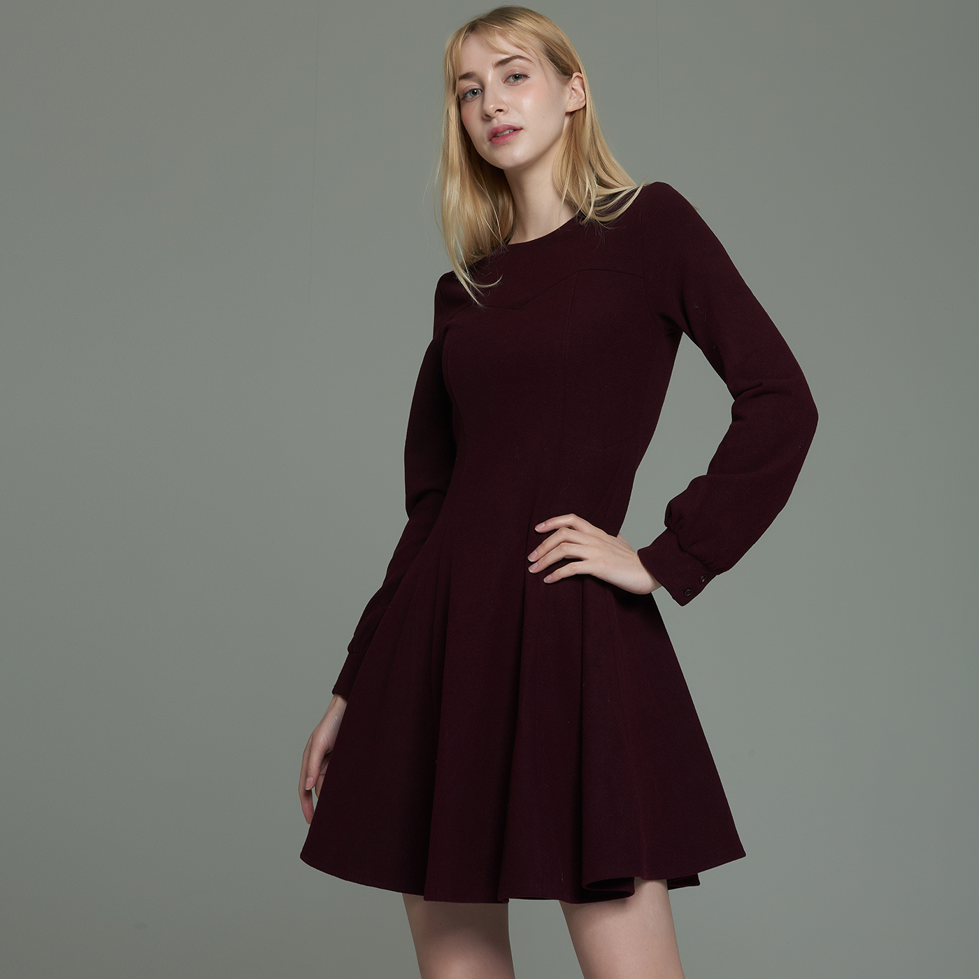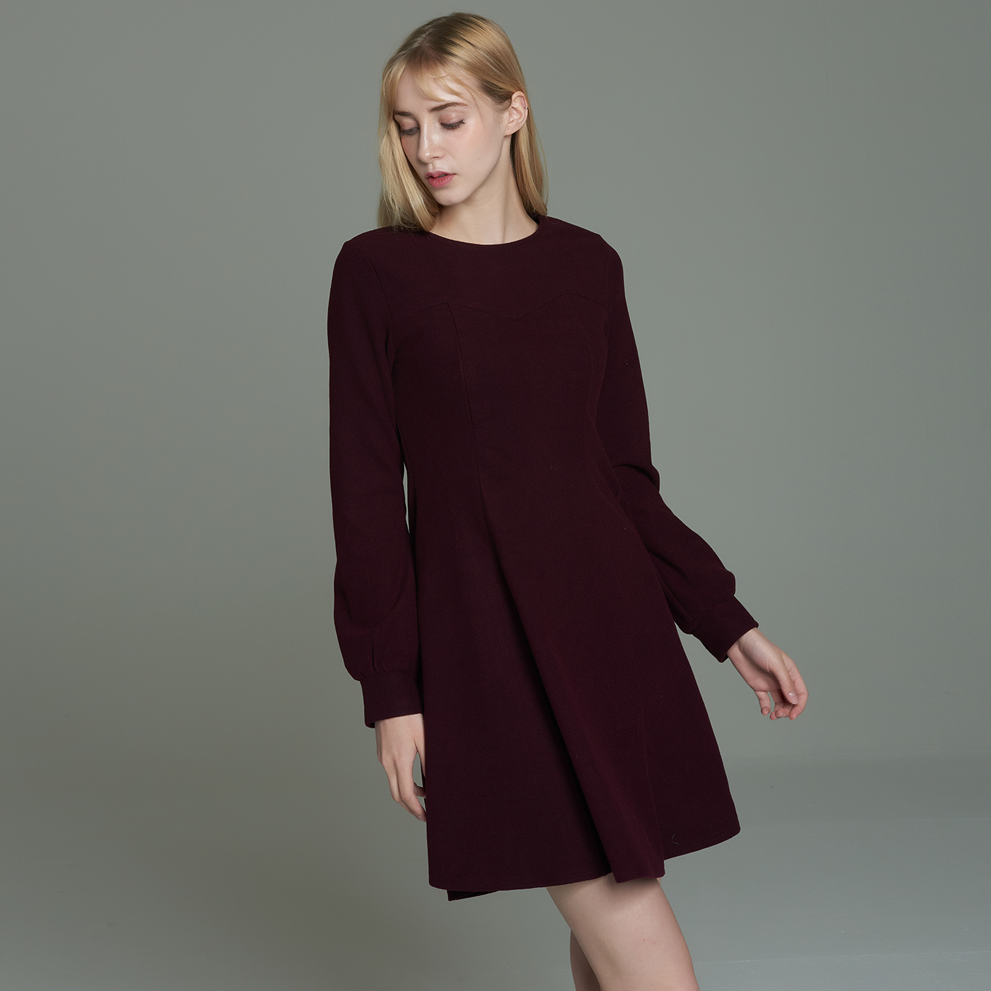 프리티 볼륨소매 디자인이 사랑스런 슬림한 스타일의 원피스입니다.